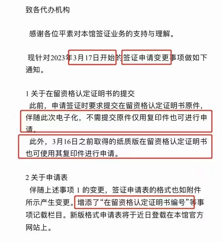 自今日(3月17日)起,申请日本留学签证,在留资格认定证明书不需要原件了,使用电子版打印即可申请了。3月16日之前取得的在留原件,亦可使用复印件办留学签证。签证申请表比之前的样式多添加了“在留资格认定证明书编号”。