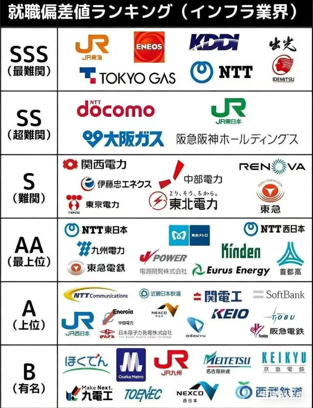 日本能源、通信、交通行业的“国之重器”,尤其是JR東海和NTT,凭借垄断性地位和稳定福利,成为求职者眼中的“铁饭碗”。