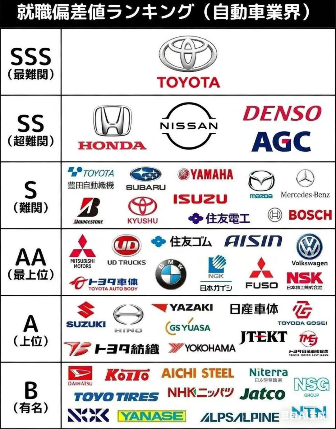 日本汽车行业的“三巨头”加上顶级零部件供应商,是汽车专业毕业生的“核心目标”。