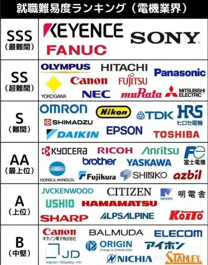 SS(超難関):OLYMPUS、HITACHI、Panasonic、Canon、Fujitsu等