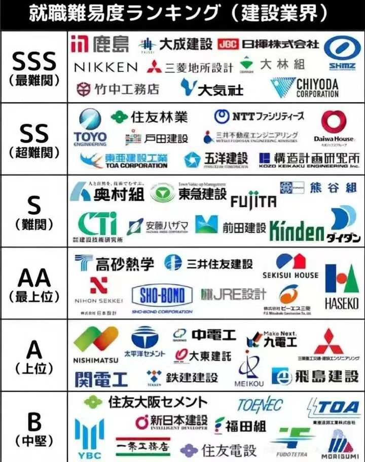 日本五大建筑公司,被称为“建设业的王者”,参与了全球众多地标项目,招聘时对候选人的工程实力和项目管理能力要求极高。