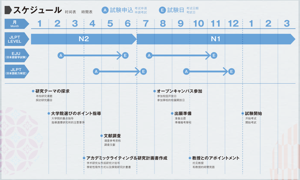 根据研究独特的日本大学院考试体系,指导研究计划书的作成,讓同學了解日本獨特的研究所的考試制度,支援同學来擬定考试的計畫