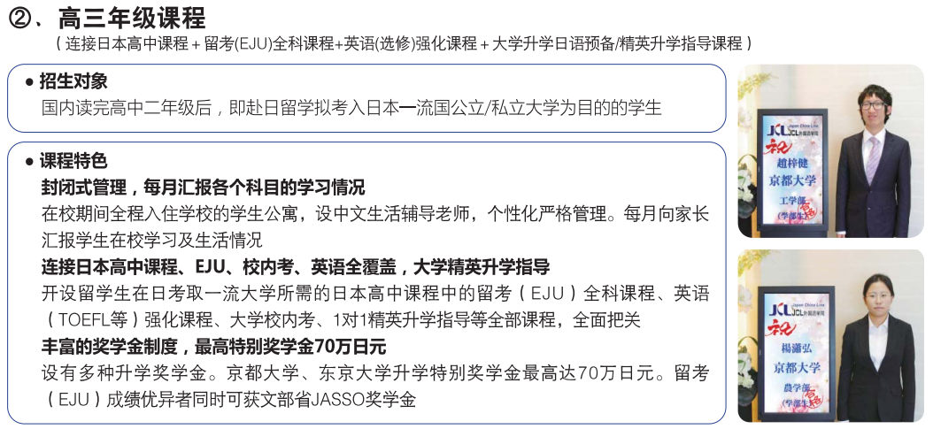 1. 以日本大学学部为升学目标者:高考成绩450分以上/750分满分,无日语要求。