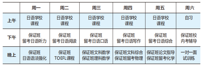 理科基础课程(日语+理化生+数学)+EJU留考对策课程(日语+理化生+数学)+托福/托业预备课程/高分对策课程+志愿学校校内考特训课程+小论文/面试辅导课程 |