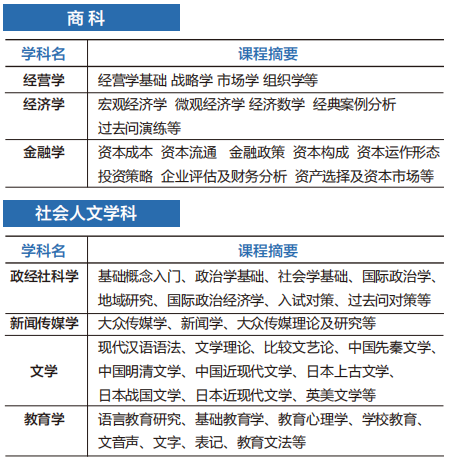 日本语能力考N1对策班+托福/托业预备课程/高分对策课程+研究计划书VIP辅导课程+专题研讨课程+高等数学基础/进阶课程+专业课基础/进阶课程+小论文/面试辅导课程 |