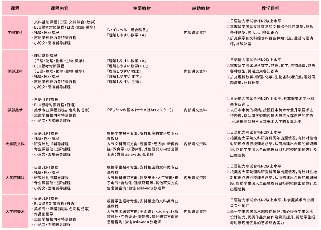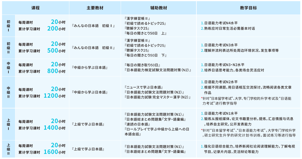 重视个人能力,依学生个人能力进行升学指导。以平衡周密的课程对应日本语能力试验及大学入学考试。对希望进入日本大学院的学生们,进行个别的研究计划及论文撰写的指导。对专科毕业的学生,提供编入本科大学3年级和直接升读大学院的机会。针对优异学生颁给奖学金以鼓励学生。