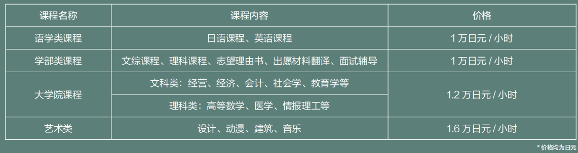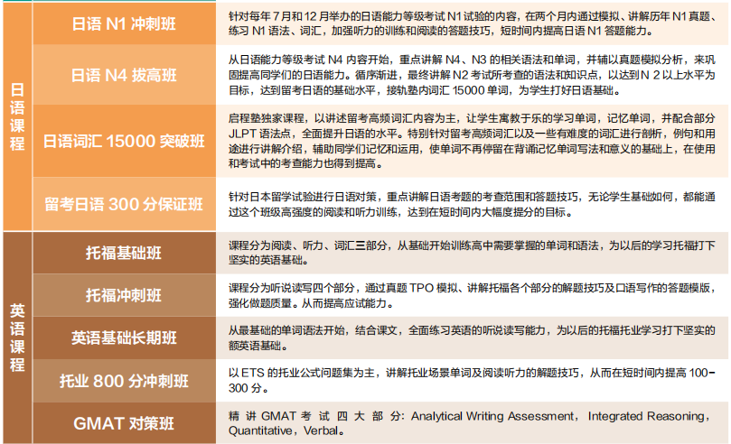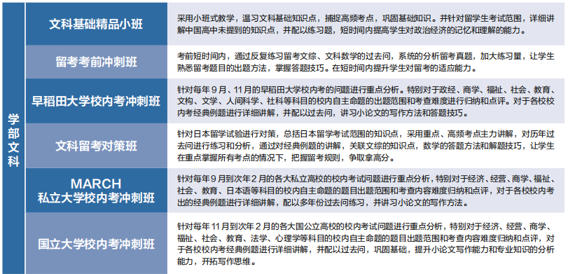 学部类课程:文综课程、理科课程、志望理由书、出愿材料翻译、面试辅导