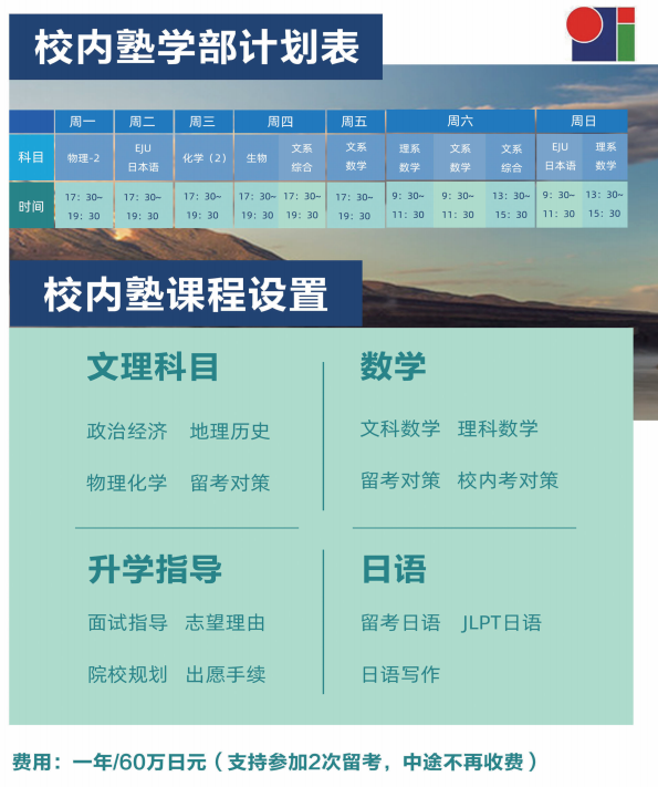 4)有升入日本大学所需的文综、理综的模拟考试和备考指导