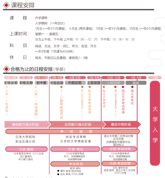 *升学1年课程需要日本语能力测试N4合格,或者有同等日语能力。